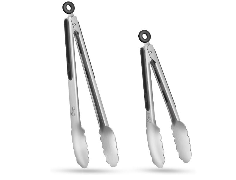 These kitchen tongs are a cut above the rest. Crafted from durable stainless steel, they boast impressive heat resistance and are built to last. The set includes both 9-inch and 12-inch tongs, providing versatility for various cooking needs. The innovative locking mechanism with a hanging loop ensures convenient storage and effortless handling. The ergonomic design, featuring a silicone-cushioned handle, offers superior grip and comfort, while the safety-engineered handle protects hands from accidental cuts. Whether you’re grilling, flipping, or serving, these tongs are a reliable and indispensable addition to any kitchen.