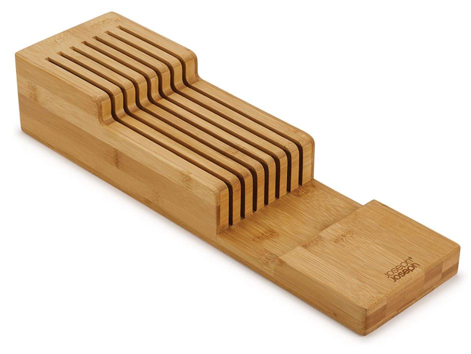 Keeping knives properly organized in the kitchen is an essential aspect for anyone who’s serious about cooking at home. If you like the idea of storing your cutting tools in the drawer, perhaps this knife block from Noble Home & Chef represents a great choice for the money. It’s designed to be inserted in the drawer and hold a set of 12 small and large knives.