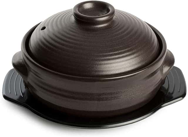 Sunrise Kitchen Supply makes various types of Korean hot stone bowls. Take a look at this 24oz ceramic model that can be considered a valuable addition for any dolsot rice enthusiast. It’s packed together with a matching tray for protecting your table surface. As long as the temperature doesn’t reach 500 degrees Celsius, it’s safe to say that you won’t have issues using this stone bowl in the oven or the stovetop.
