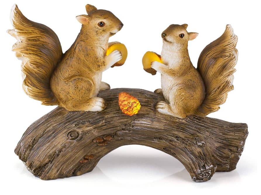 Whether you wish to decorate a walkway on the lawn or enhance the cottage garden with a touch of nature, these fun squirrels sitting on a log can work very well. It’s a breeze to install this lawn ornament wherever you wish without bothering with wiring hassles. Both the nuts held by the squirrels and the one fixed on the log feature glowing illumination that makes the entire decoration stand out.