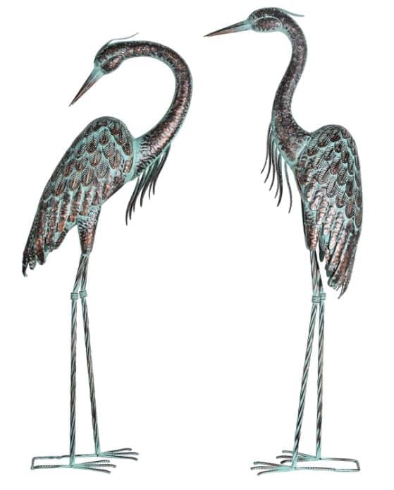 Due to the copper green color of the statues, it’s safe to say that your garden can benefit from a vintage accent. The herons are painted carefully to withstand the elements while the thick metal should last for a long time. There are no LED lights provided so you can only enjoy these decorations during the day. It’s worth combining the metal statues with other lawn ornaments to create the most attractive look possible.