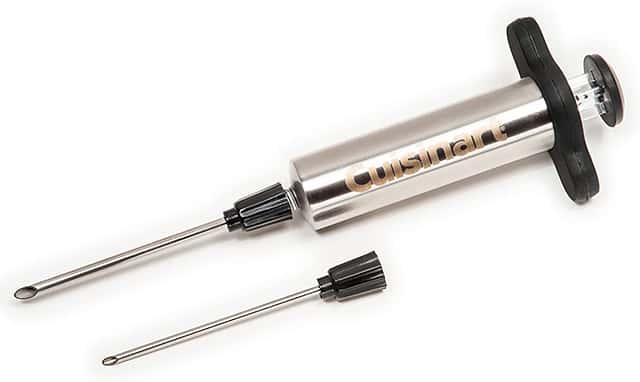 The Cuisinart flavor injector is perfect for meat injecting novices who are only interested in using this tool a few times a year. It is easy to use, easy to store and has a simple, classic design. This body and needle are made from stainless steel and the marinade is visible through the tube.
