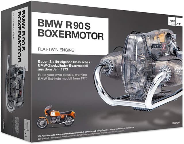 Franzis offers some great officially licensed model engine kits. Another solid example is the BMW R/90-S flat-twin engine replica that lets you witness a classic engineering marvel from 1973. The engine is built at a 1:2 scale model while the transparent plastic casing allows for convenient observation of all the parts. The kit comes with a working five-speed gearbox and authentic engine sounds to complete the experience.