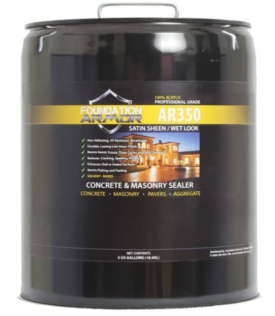 The Foundation Armor AR350 represents a solid choice for the money if you want to enhance the look and reduce damage for your pavers. This solvent-based paver sealer is designed to provide a wet visual effect without excessive glossiness. It makes use of a clear acrylic formula that won’t give the pavers an unsightly yellow color. Keep in mind that this sealer will darken the pavers.