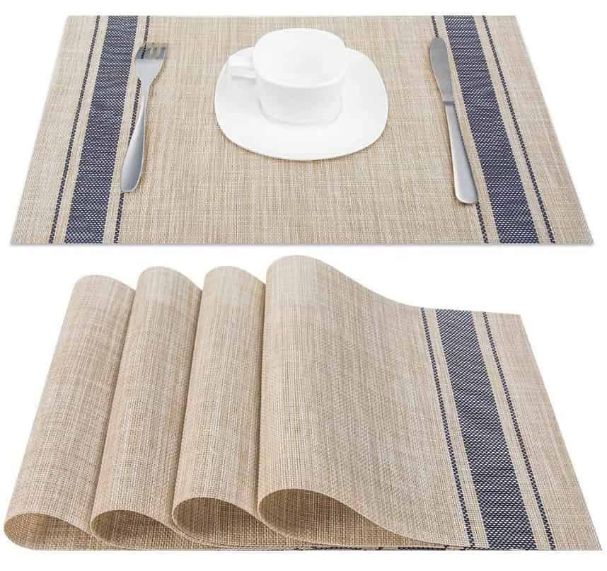 Inexpensive and durable, the Home Brilliant placemat deserves a spot on our list. It relies on a polyester blend focused on long-term resistance to wear and tear. This is the kind of placemat that will easily protect your table during everyday regular use. It can be a lifesaver against accidental scratches or to avoid stubborn stains on the table’s surface. The placemats come in packs of four or six pieces.