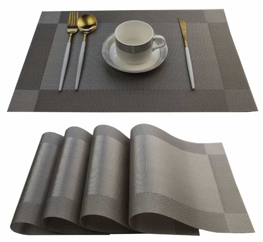 Some great qualities of this placemat include the resistance to mildew and stains as well as the ability to dry fast. Keep in mind that its PVC construction is still vulnerable to water damage and spills but the good news is that you can wash it without too many hassles. These placemats arrive in packs of four, six, or eight pieces. They all feature a non-slip bottom to stay firmly in place on the table.