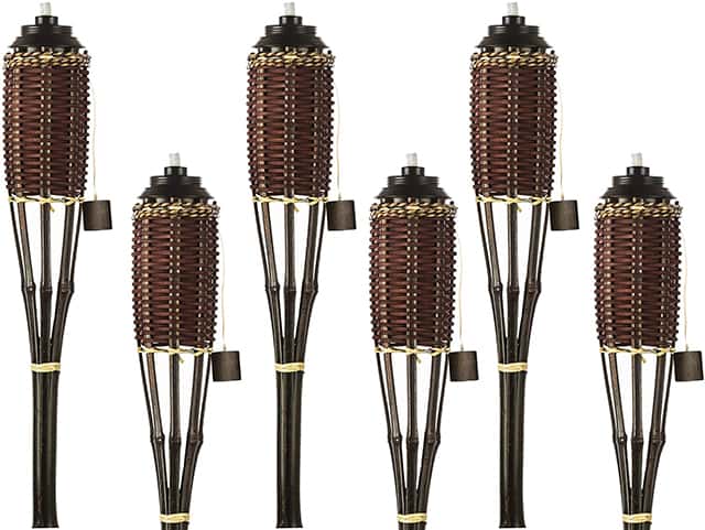 If you want convenience and affordability, it’s best to buy your tiki torches in bulk. This set contains several tiki torches made of rich, brown bamboo. The wicks are also made of fiberglass, which means extra durability, making this set an excellent investment in the long term. The Backyadda bamboo torches come with the classic tiki design. At the same time, the wicker weave adds a touch of luxury to your outdoors.