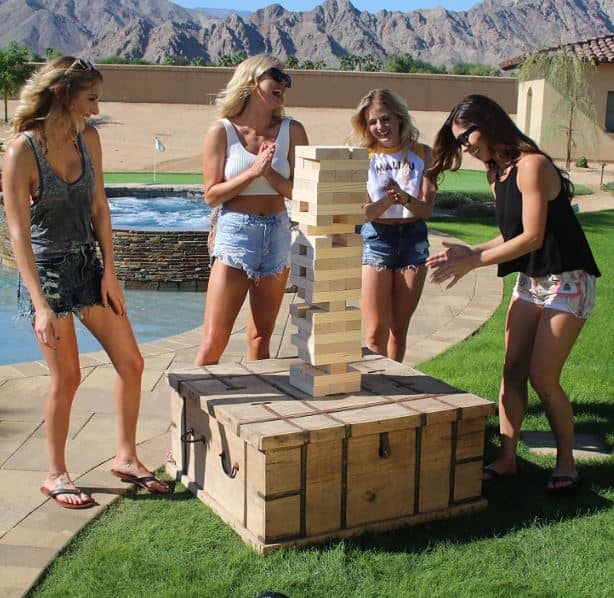 The Jenga tower is already pretty tall with its initial 2.5 feet height. However, as the game progresses, it will become even taller reaching more than 5 feet. The giant blocks are fun to handle and make use of similar materials as the classic-sized version. GoSports relies on robust pine wood without any knots to ensure a smooth gameplay experience. Aside from a convenient carry case for all the pieces, the giant Jenga game also arrives with a dry erase board for setting up your own rules.