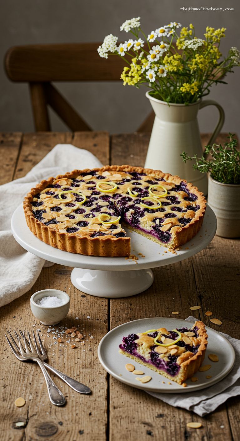 - 6. Reduce oven to 350°F (175°C). Spread frangipane in shell, scatter blueberries, bake 35–40 minutes until puffed and set.