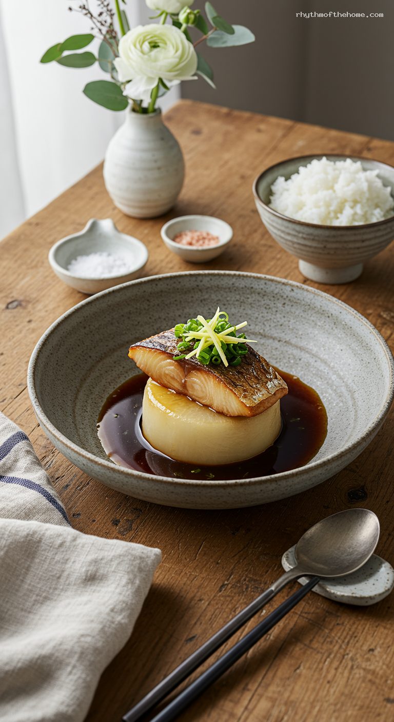 • Restaurant technique made easy: pre-simmered daikon and quick fish blanching for clean, refined flavors.