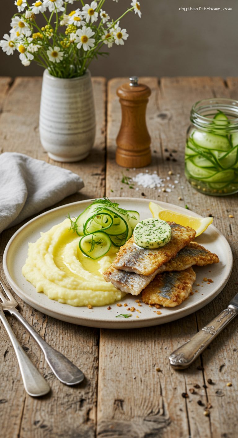 - Classic Swedish comfort: crisp, buttery strömming with silky mash and bright, snappy cucumbers.