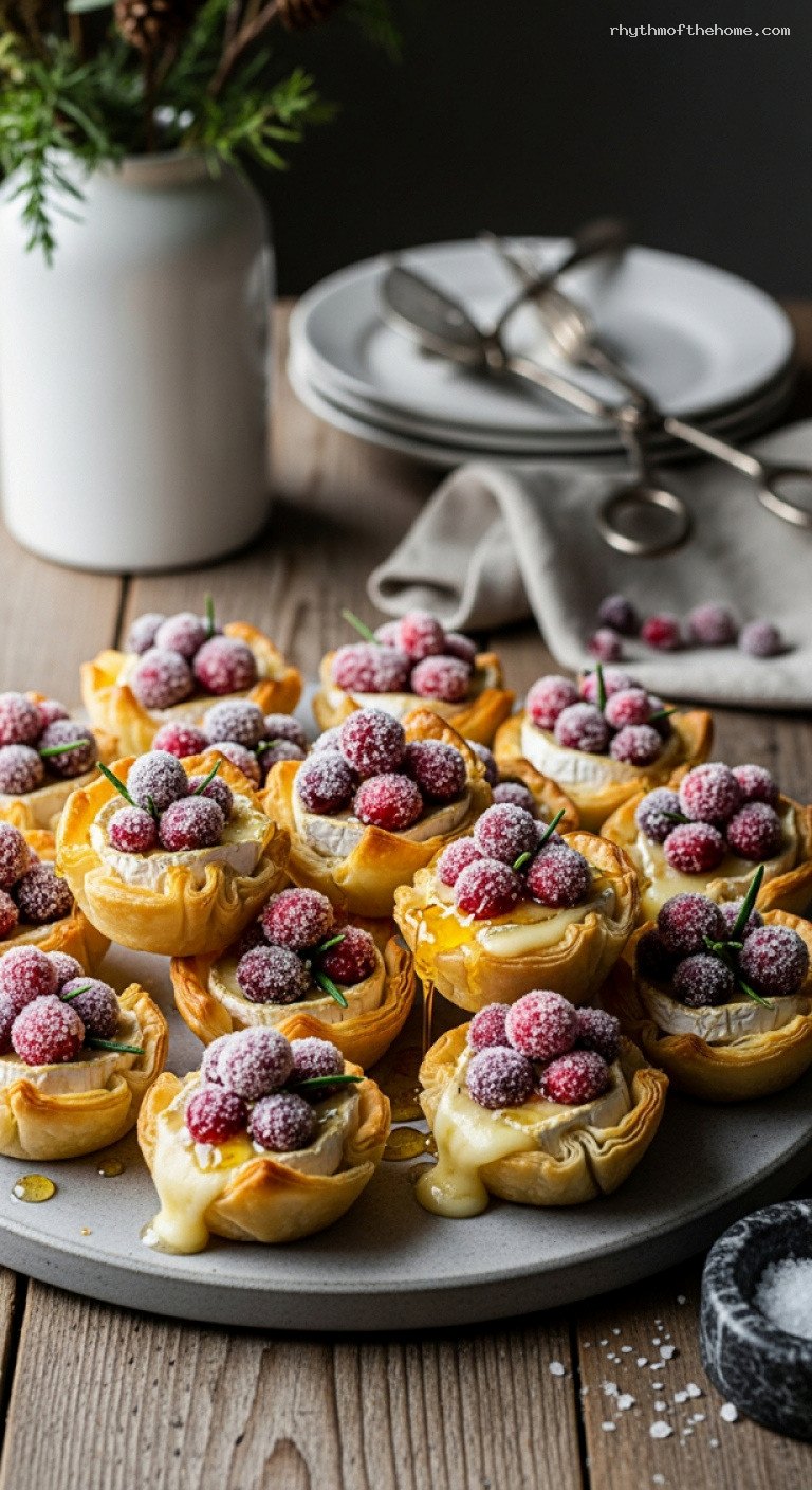 Sparkling Cranberry Brie Bites with Rosemary Honey