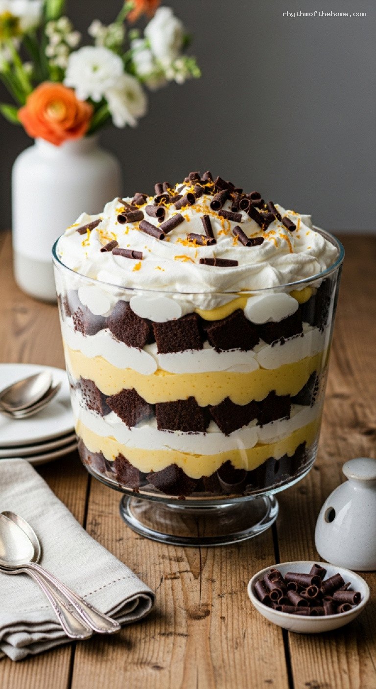 Chocolate Orange Trifle With Zesty Custard and Whipped Cream