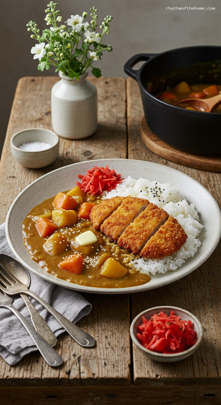 • Pork Katsu Curry: Swap chicken for 4 pork loin chops (1/2 inch thick), pounded slightly; fry 3–4 minutes per side.