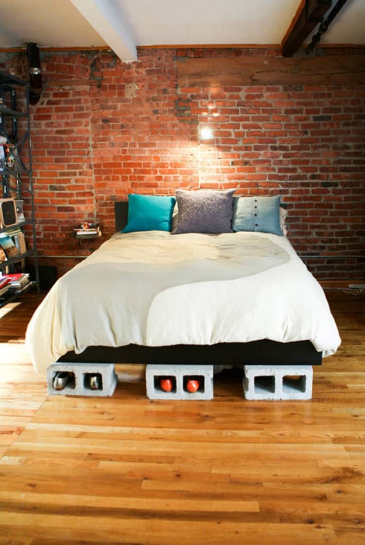 Perfect for fans of industrial design styles, this bed frame shows off some unique characteristics. Instead of regular materials, it makes use of cinder blocks that add storage under the bed. At the same time, it’s also a visual upgrade if you enjoy the idea of an industrial theme in the bedroom. Consider mixing this kind of look with an exposed brick wall and pipe fixtures to ensure a cohesive style overall.