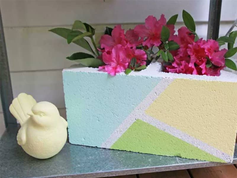 Even if you don’t like the plain look of cinder blocks, that doesn’t mean you can’t repurpose them in creative ways. Some fresh paint is able to put any cinder block in a new light. For example, you can create a stylish flower vase with minimal effort. Add some fun paint colors and patterns to the exterior of the concrete block to minimize the industrial visual impact of the decor piece and inject some new personality into it.