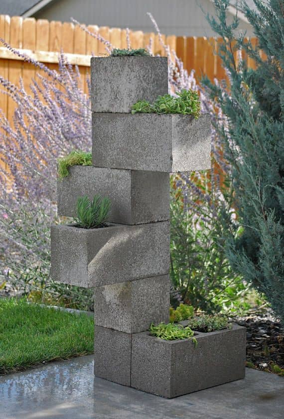 There are many practical ways to use cinder blocks around the house. However, there are also great methods to incorporate these elements into modern garden decor styles. A nice example is this abstract outdoor piece built using multiple cinder blocks in an eye-catching arrangement. You can make it feel like a part of the garden by including a few plants in some blocks. Just make sure you’re careful during the construction process to avoid unpleasant accidents such as dropping a heavy cinder block on your foot.