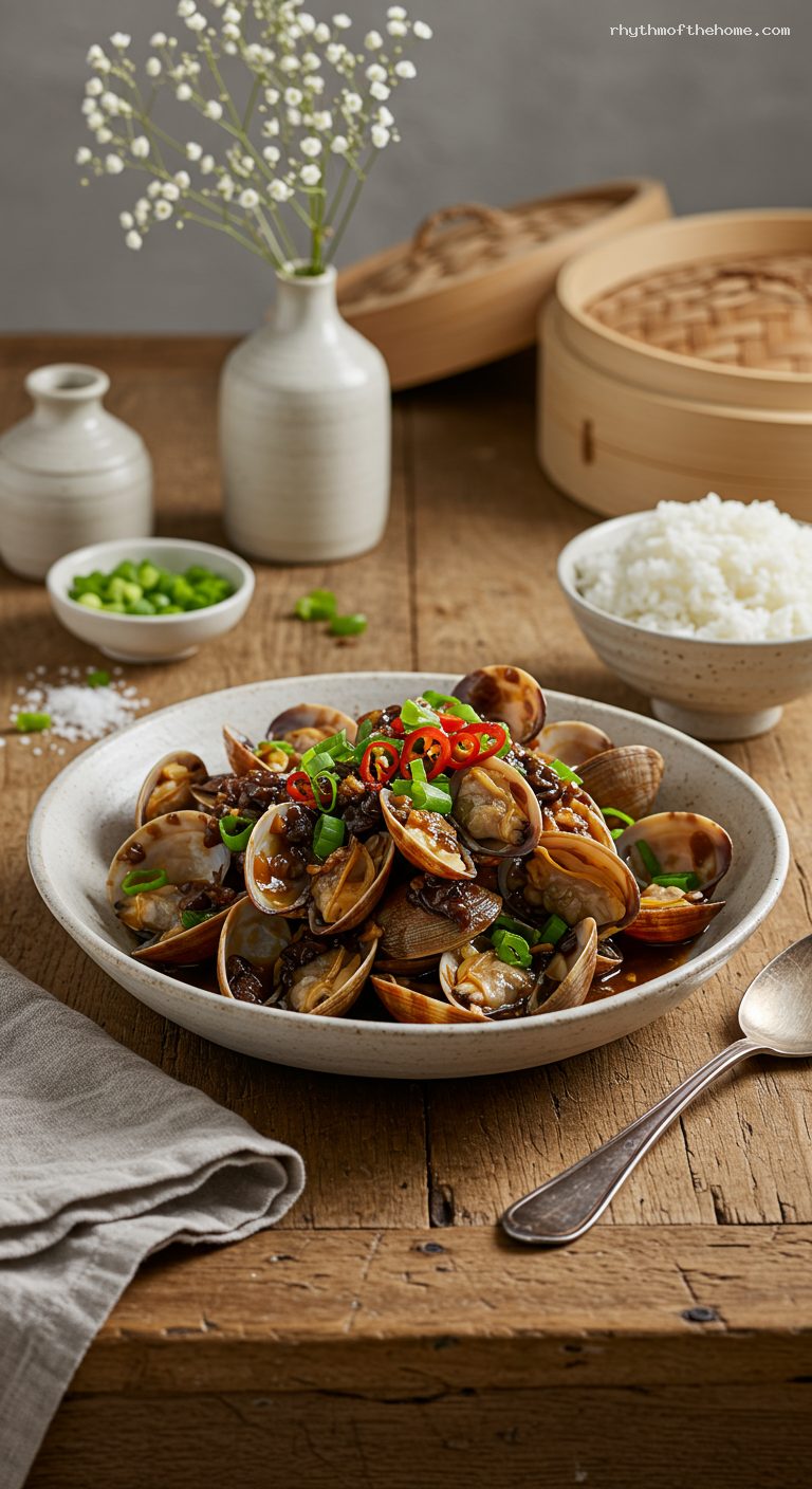 - Spicy Black Bean Clams: Add 1–2 tsp chili bean paste (doubanjiang) with the aromatics and increase fresh chiles to taste.