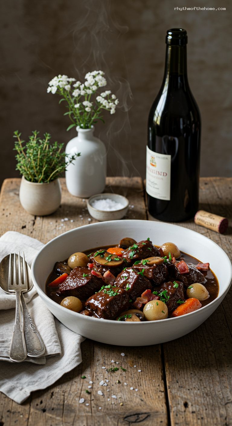 Classic Boeuf Bourguignon with Mushrooms and Pearl Onions