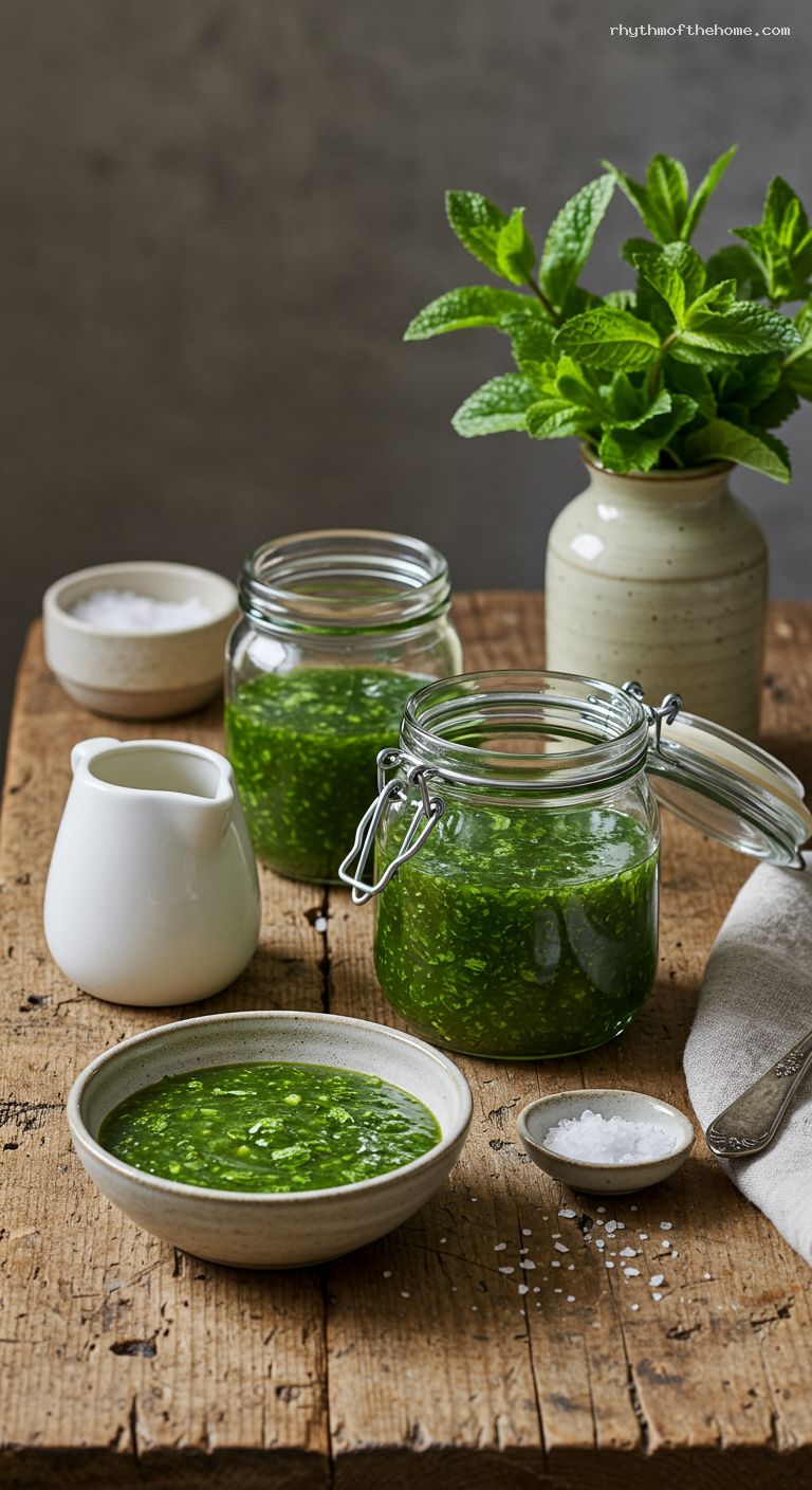 Let the sauce stand at room temperature for 15 minutes. During this time, the mint softens and the flavors meld into a classic tangy-sweet profile. For an even deeper mint character, you can chill it for up to 1–2 hours before serving.