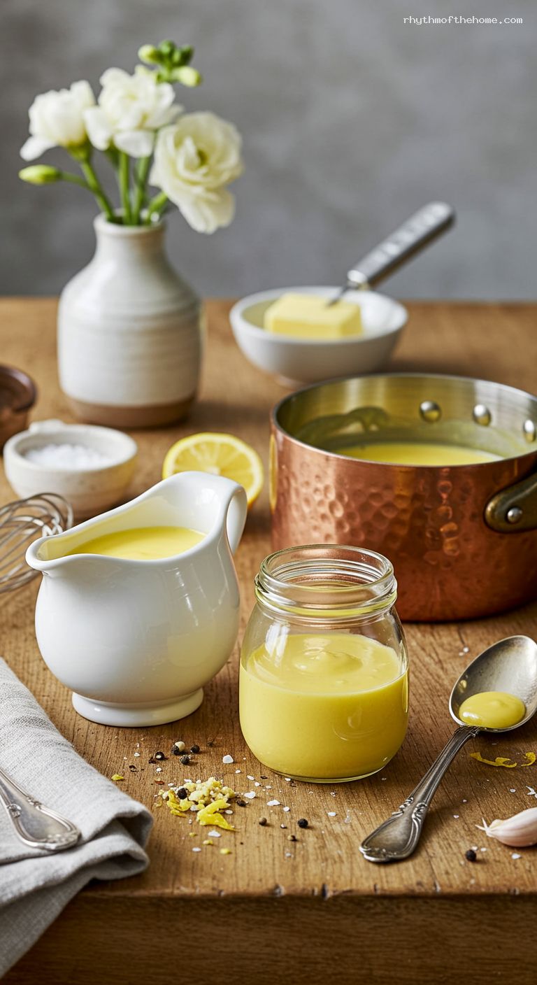 Whisk in the salt and a pinch of cayenne or white pepper. Taste and add more lemon juice for brightness or a splash of warm water to loosen to a pourable, nappe consistency. The finished sauce should be silky, glossy, and just thick enough to coat a spoon.
