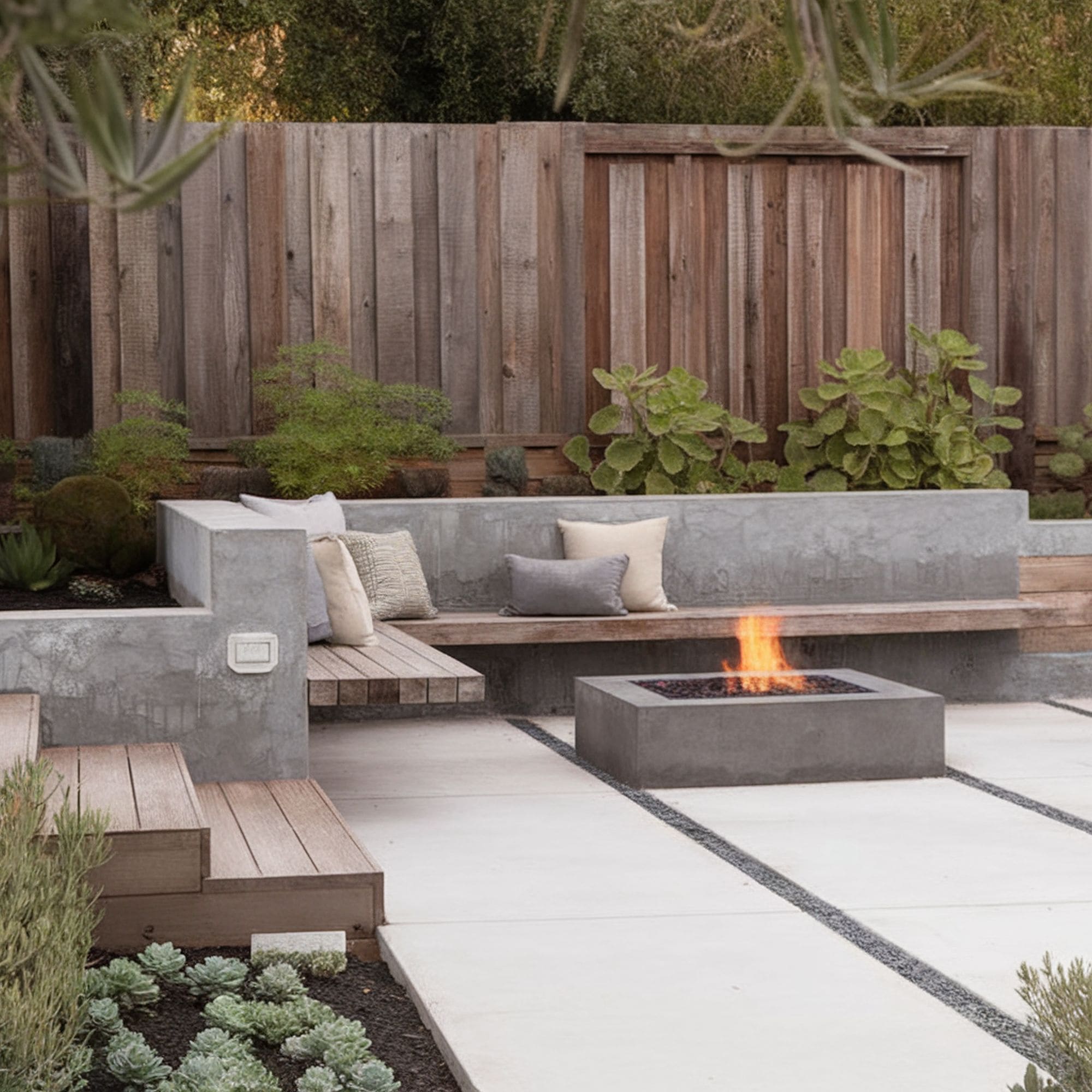 The solution is to tone down the roughness of concrete with a warmer material such as natural wood. A harmonious blend of these two materials creates a unique visual effect as concrete and wood appear to complement each other very well. Try adding modern benches that use both materials and consider integrating them in a balanced way on the patio.