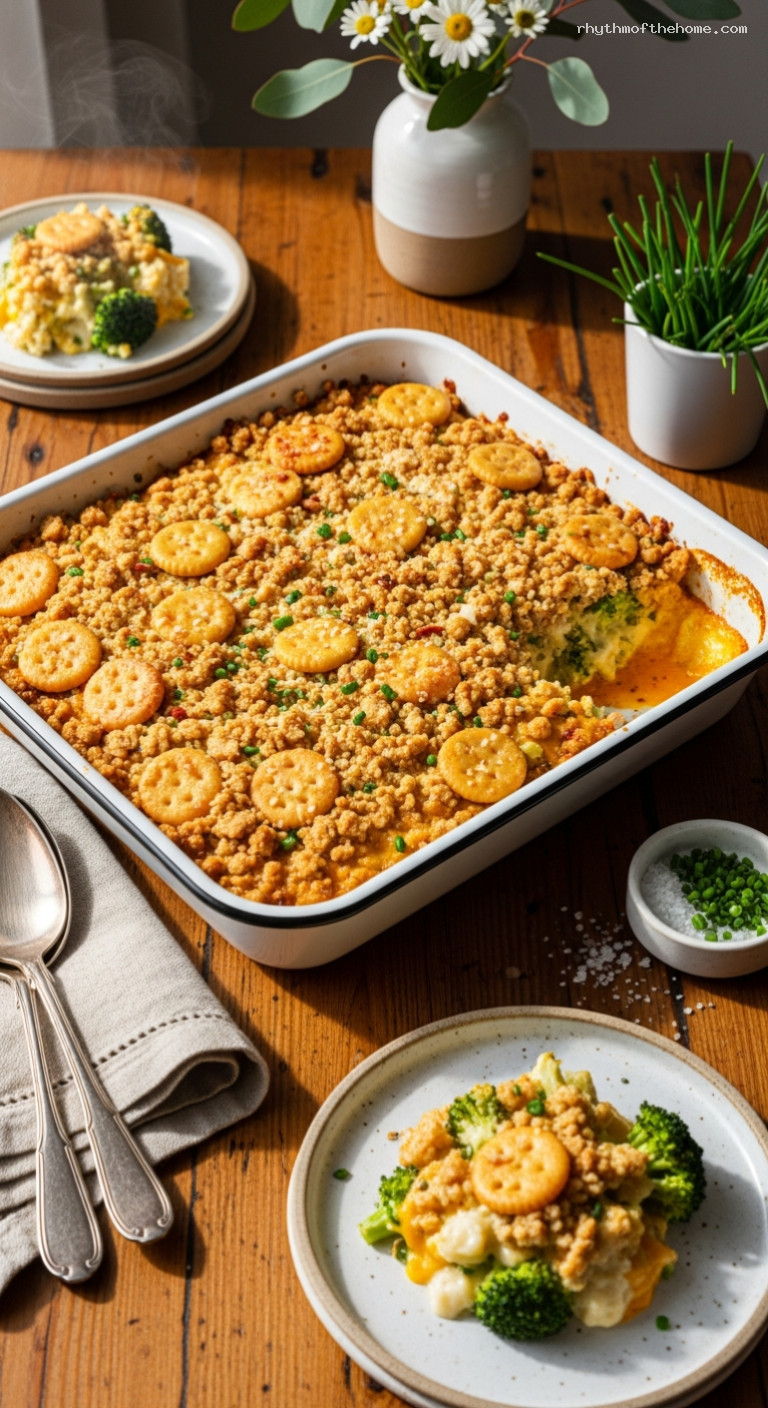 Creamy Broccoli Cheddar Casserole with Buttery Cracker Topping