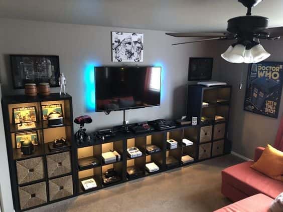 Many people can overlook the importance of storage in the game room. It’s easy to do so as you will most likely focus on leaving out enough space available to use game tables comfortably. Video gamers will usually run into storage problems if they own lots of consoles or gaming accessories. It’s important to get some good storage solutions like wall-mounted shelves which can also help to display your prized possessions.