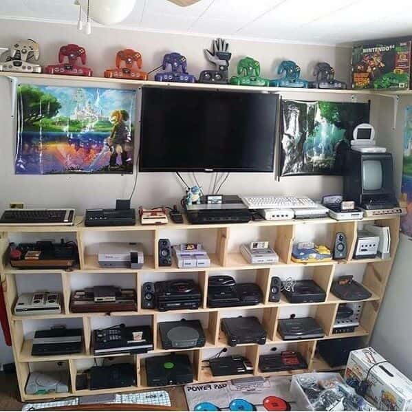 Even if you don’t have a large gaming console collection, pay attention to the messiness of wires if you install various equipment like TVs, audio systems, etc. For a clean and attractive look store cables out of sight with some cable management sleeves or concealing organizers found on Amazon.