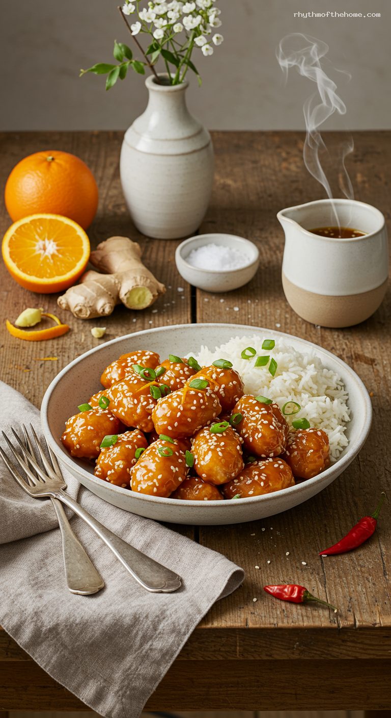 - Bright, balanced sauce: fresh orange, soy, ginger, and just enough chili heat.