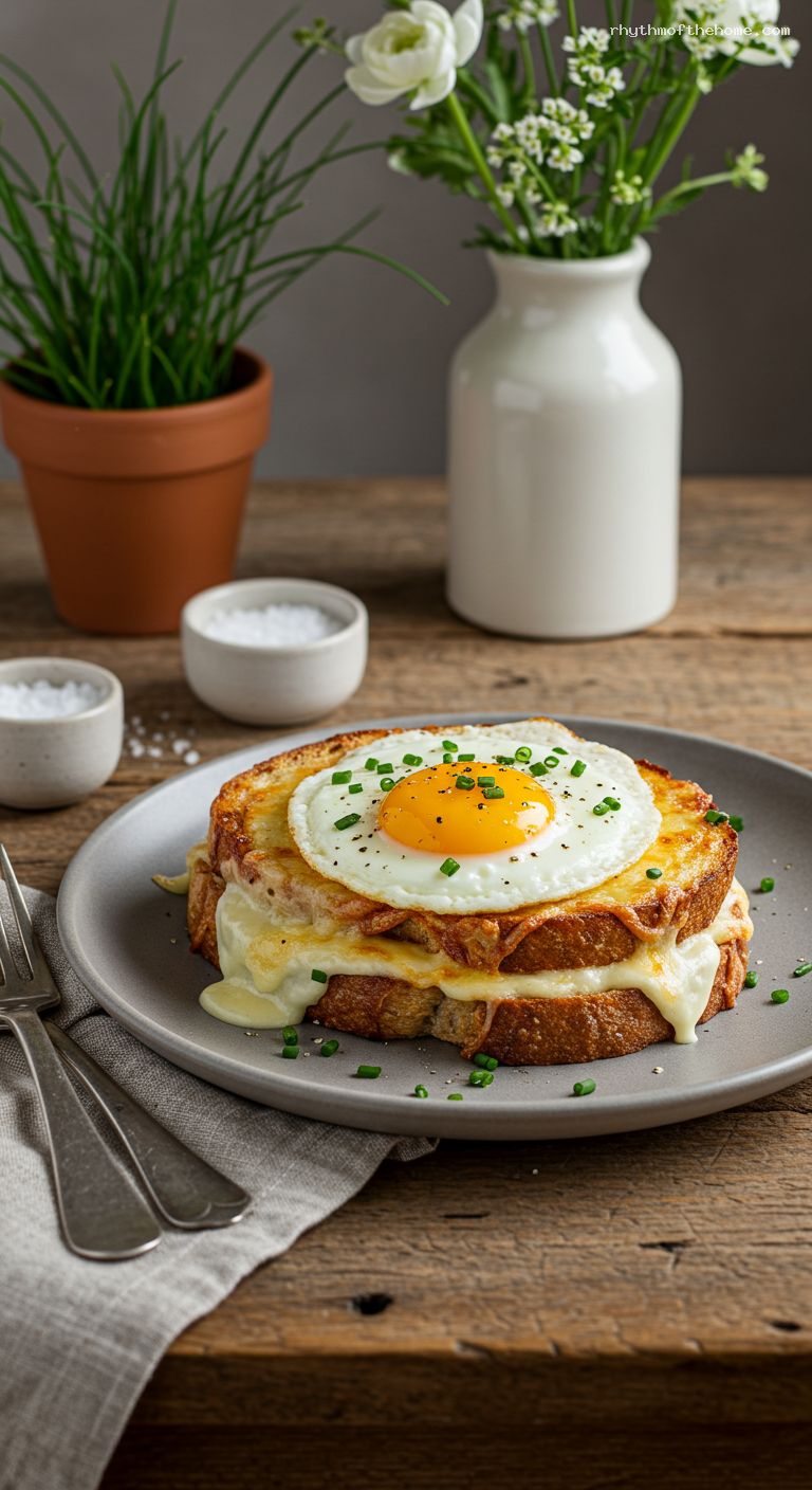 • Balanced flavors: tangy Dijon, nutty Gruyère, savory ham, and a rich runny yolk.