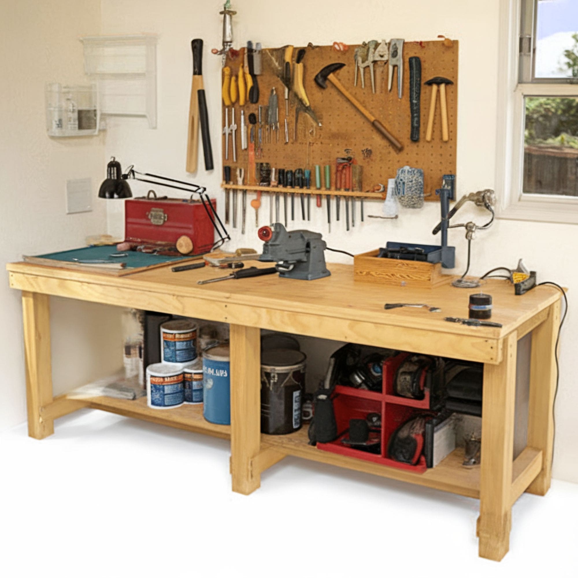 If you want a reliable, durable workbench, you can replicate the model above. It should not take more than a few hours for experienced people or about one day for a beginner. It is simple, spacious, and suitable for most DIY projects.