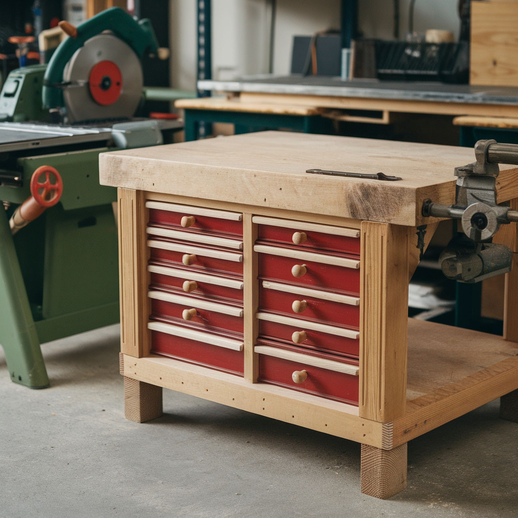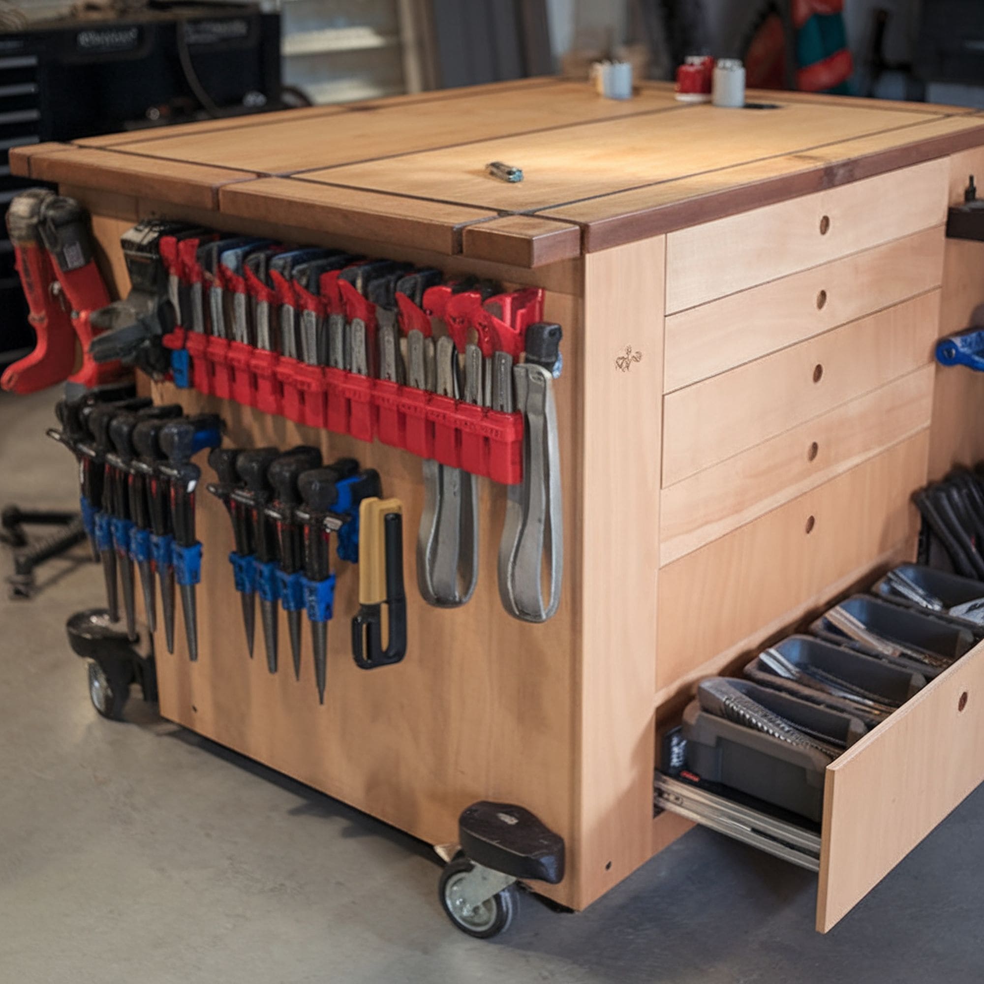 If convenience is what you are looking for, this mobile workbench ticks all the boxes! It is accessible and portable, made of spare parts, and it also comes with storage. Make sure you add sealant and polish on this workbench regardless of the color you choose.