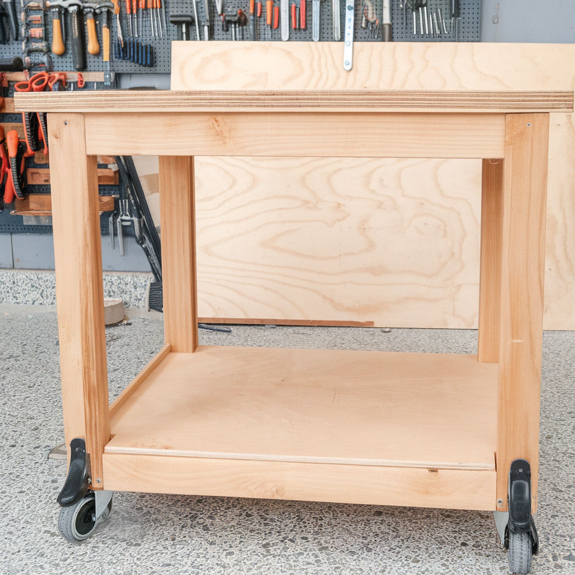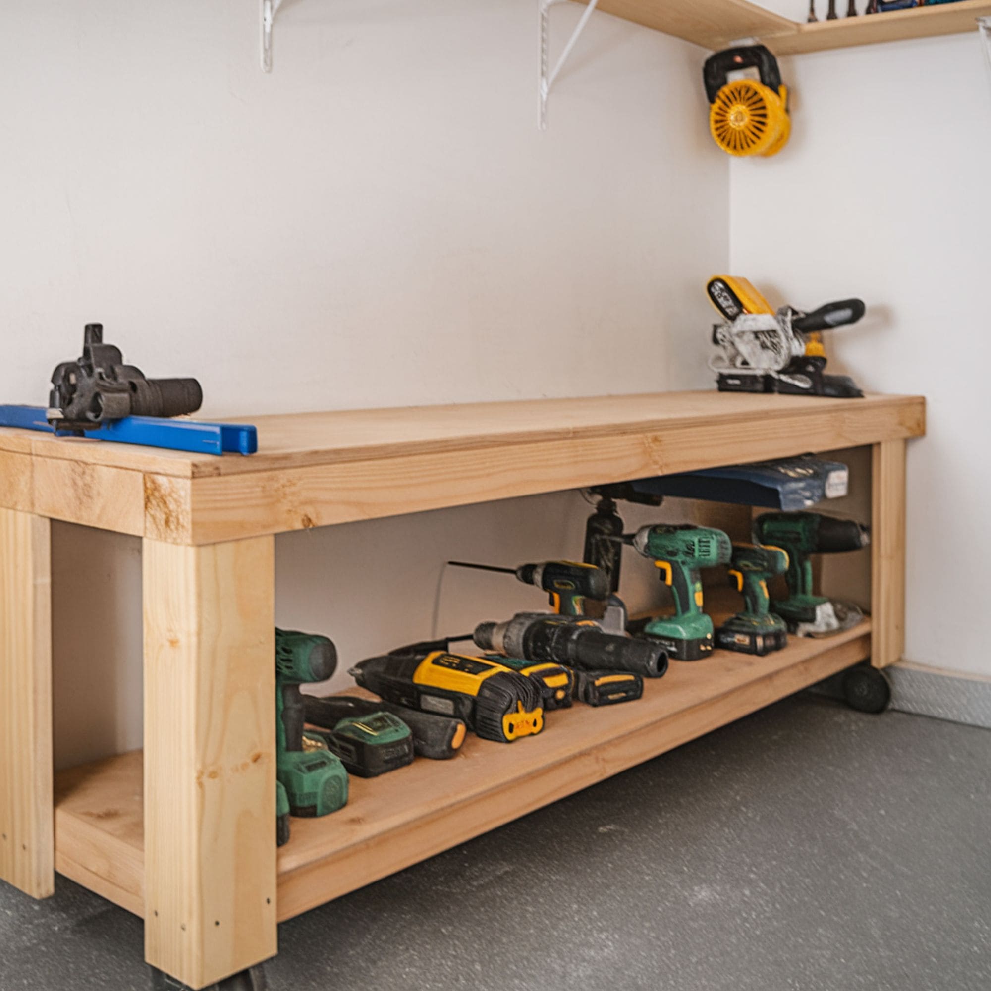 This workbench plan is both extremely reliable and spacious due to the open shelves. You can add wheels for extra accessibility and portability, but make sure you choose some that will be able to handle heavier loads.