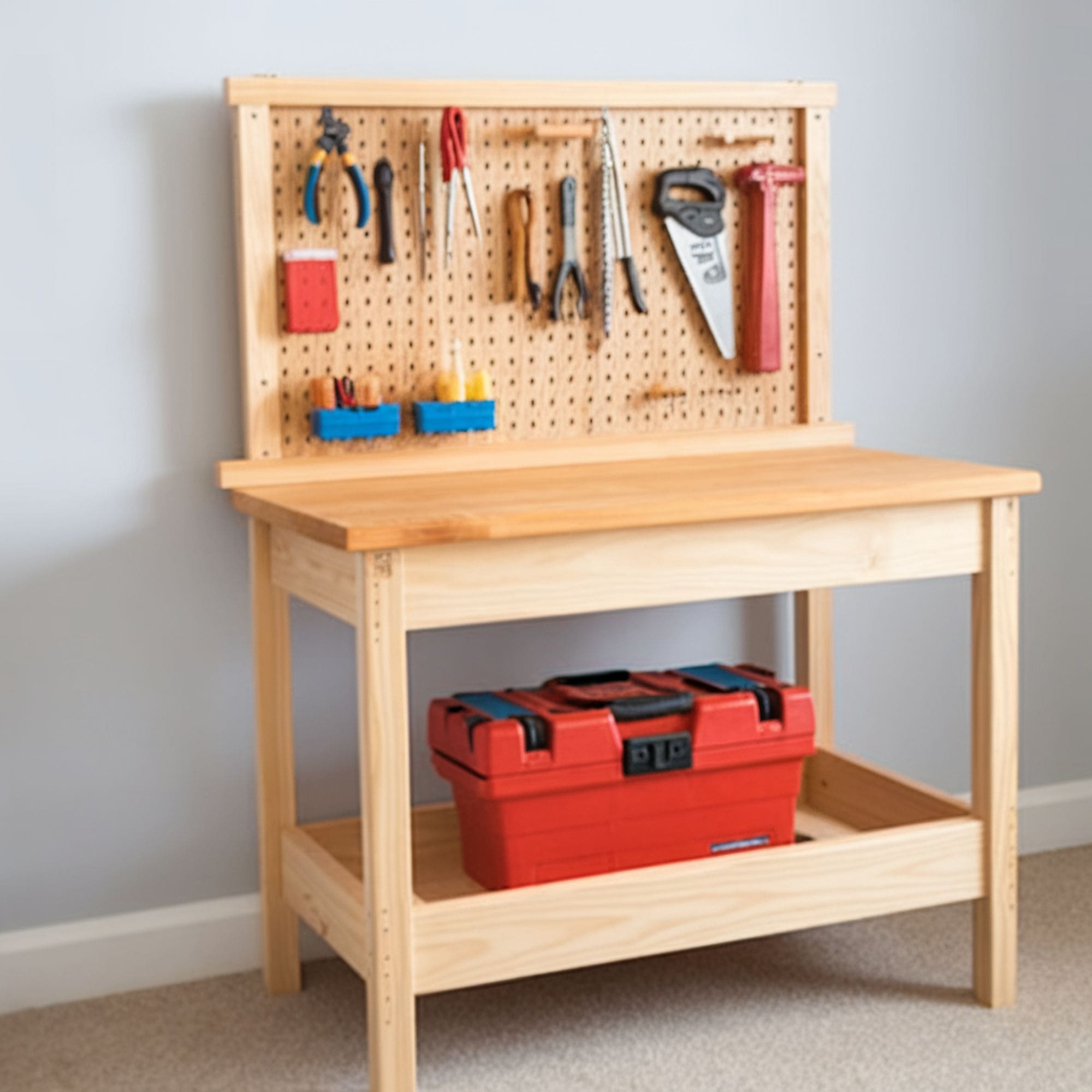 Not all workbenches must be for large, serious projects. If you want to introduce your kids to the beauty of DIY projects, this minimalist design is an excellent choice. Don’t forget about the pegboard and storage area so they can start stocking up on tools. Your little one will surely love it, and you can ask them to help you craft it from scratch!