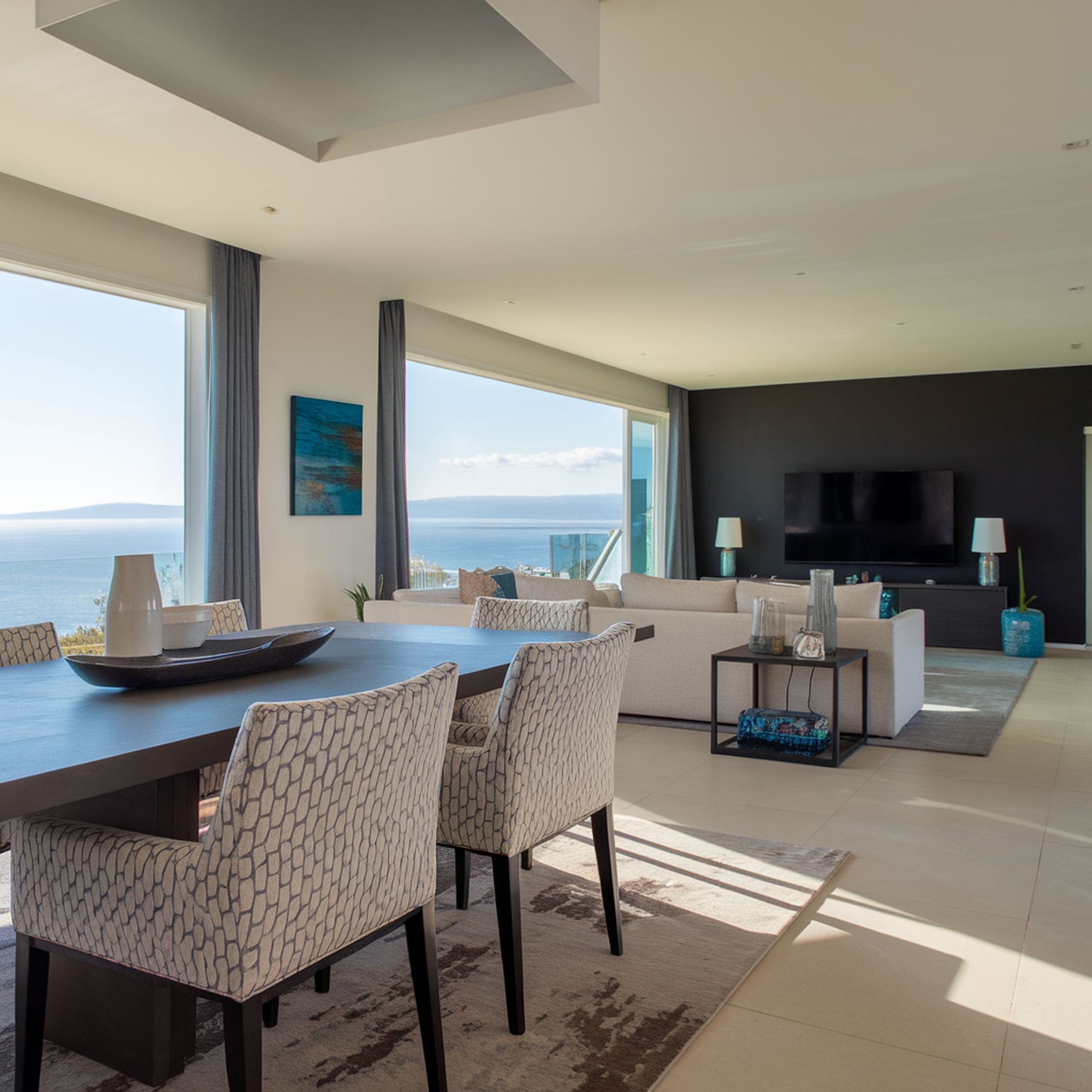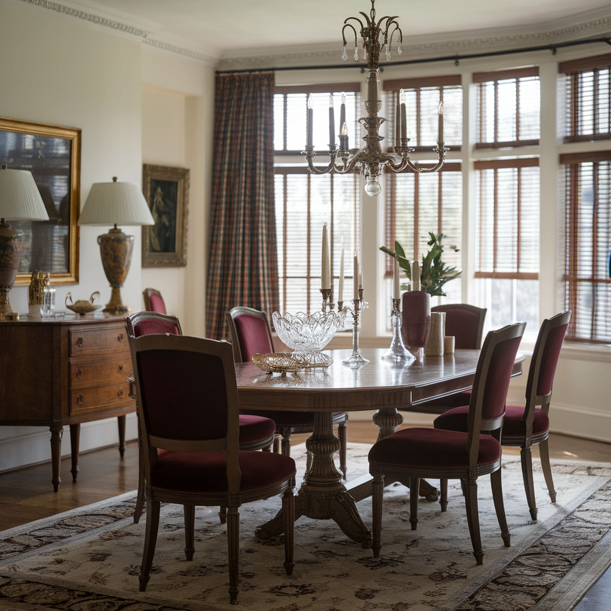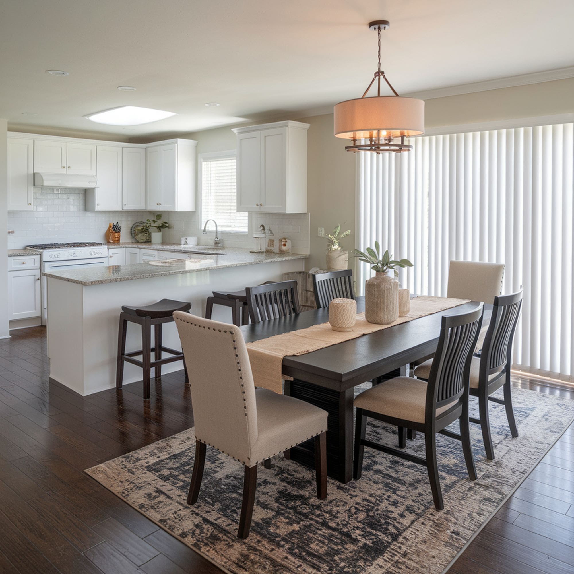 If you intend to lay down a stylish carpet beneath your dining room table, be sure that the length extends beyond the table legs and under the seating arrangement. Guests prefer to be able to slide their chair inward and outward with ease to access the dining table, and carpets make this nearly impossible.