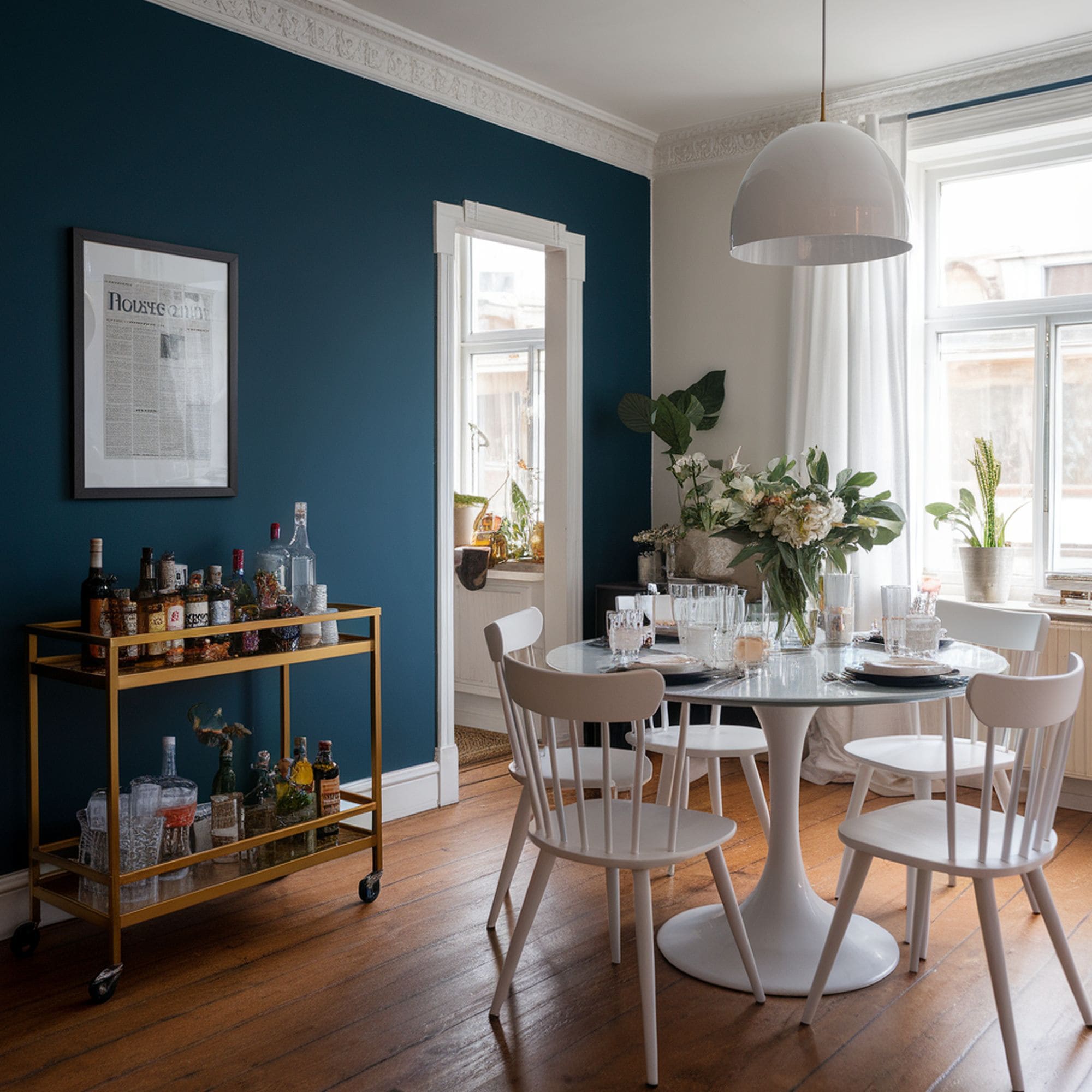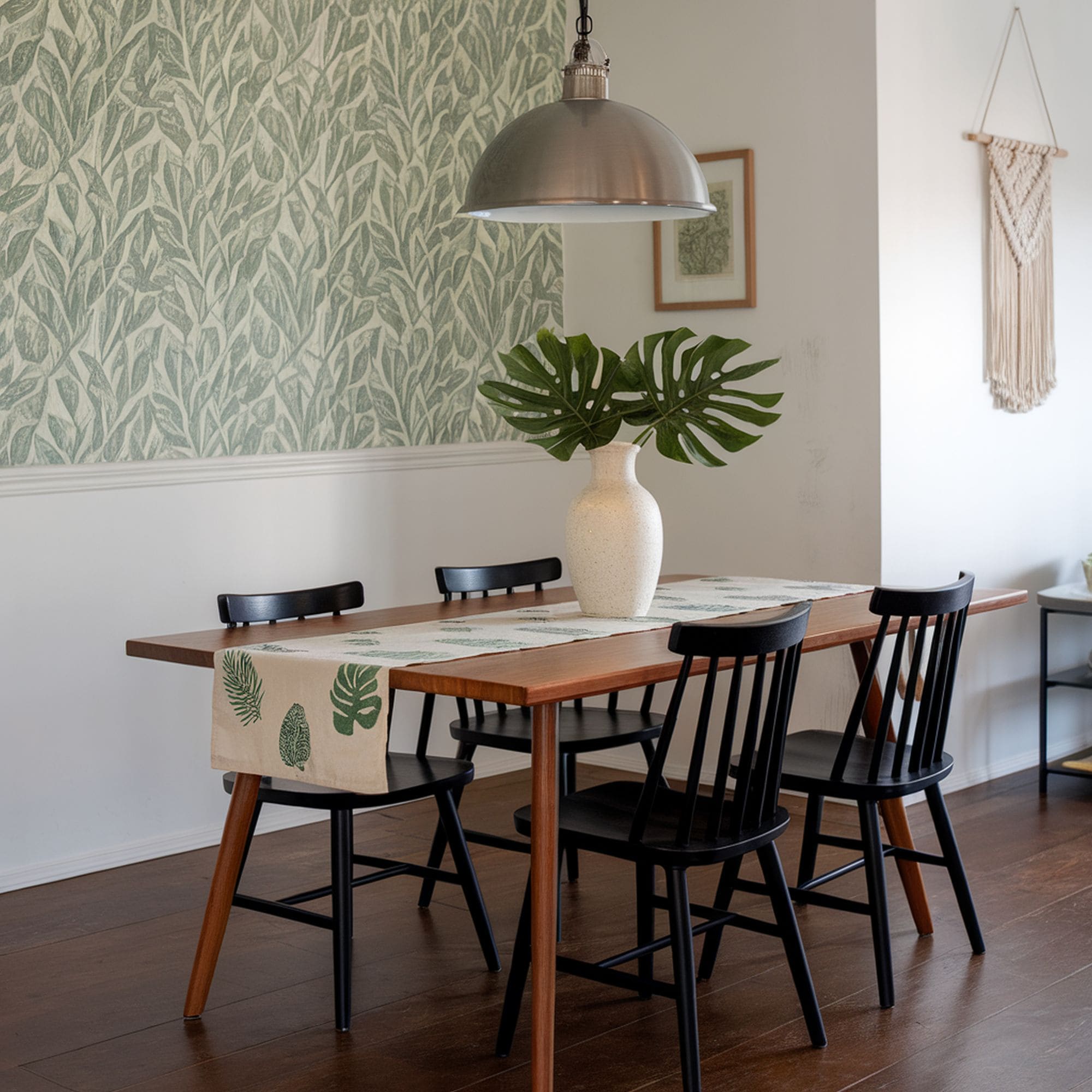 Think of your dining room as the place to put the more quirky ideas you’ve had into practice. We recommend starting with a makeover on just one wall rather than diving into abstract concepts on every angle.