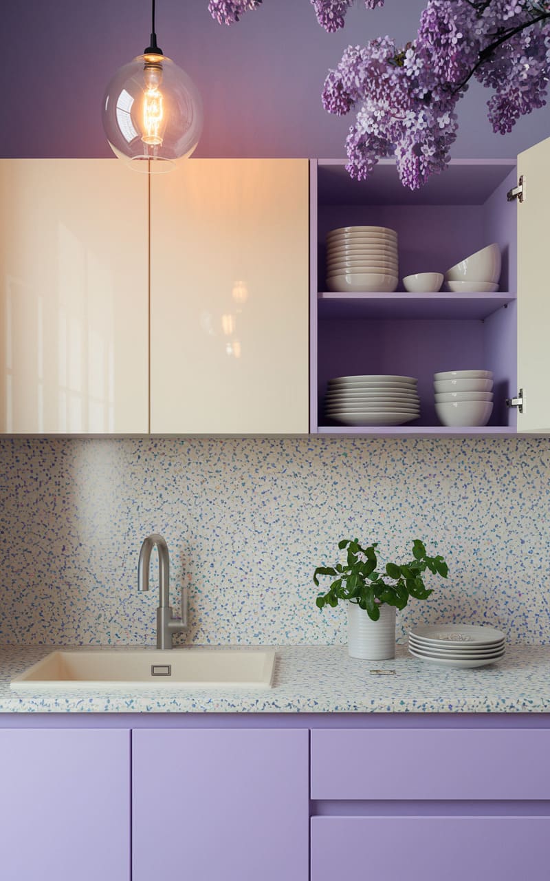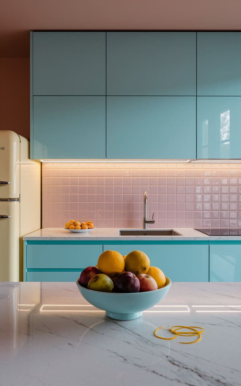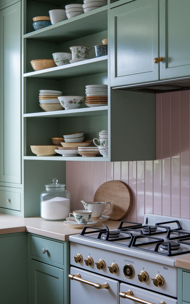 41. Dreamcore Kitchen with Vintage Pastel Tone Cabinets