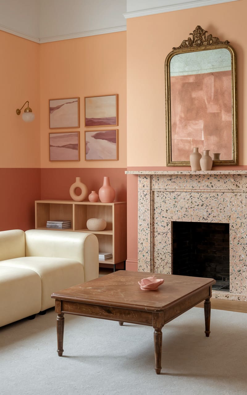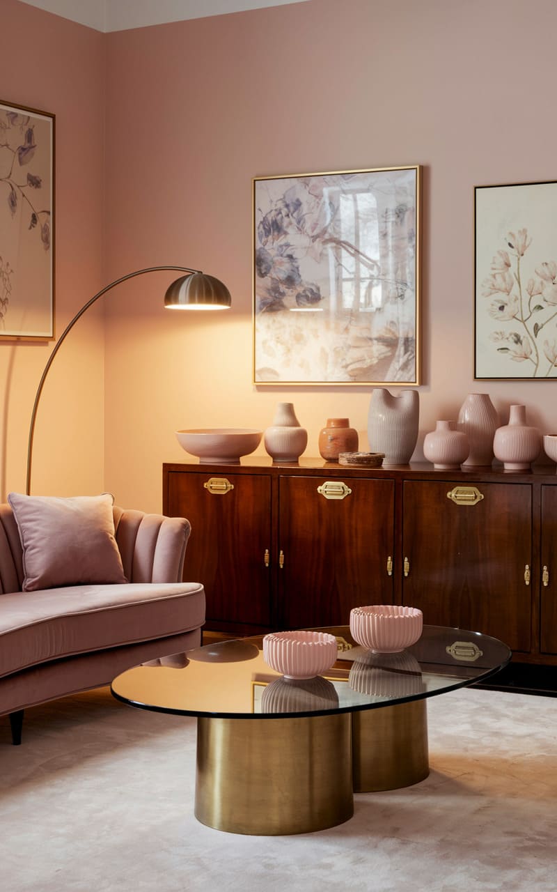 23. Soft Blush and Cream Dreamcore Living Room with Vintage and Modern Accents