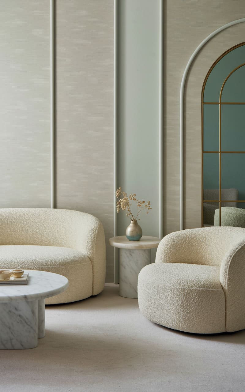 48. Mint Green and Ivory Dreamcore Living Room with a Subtle Retro Touch