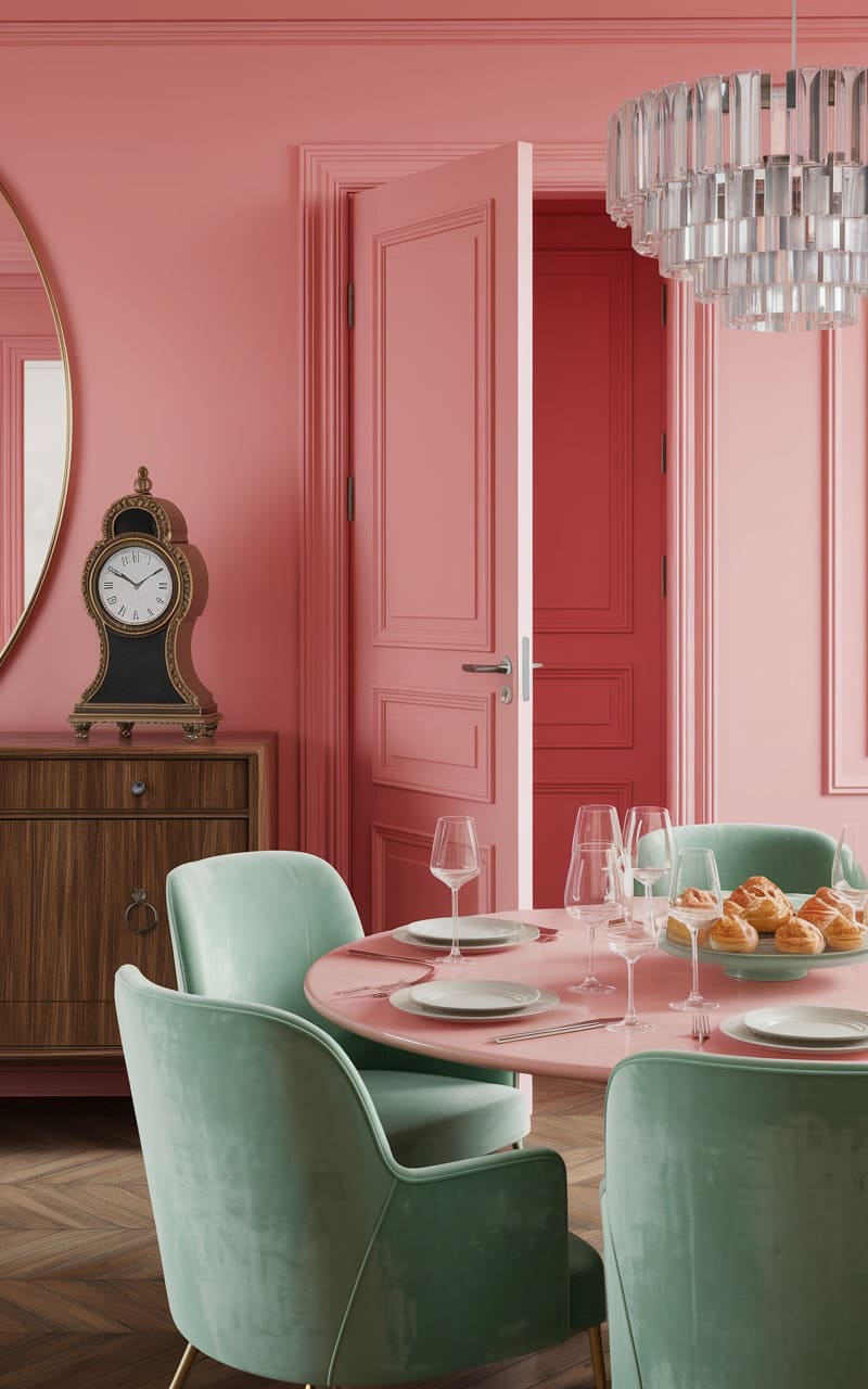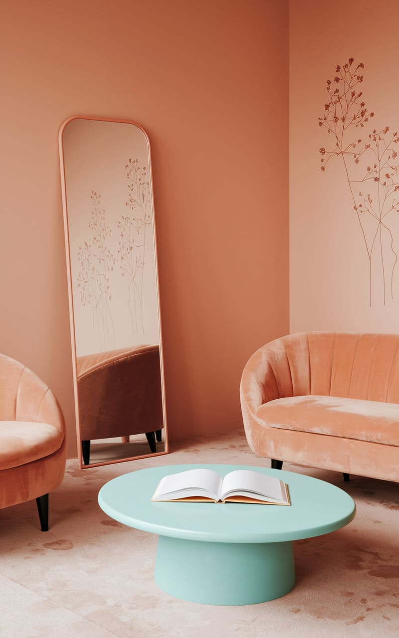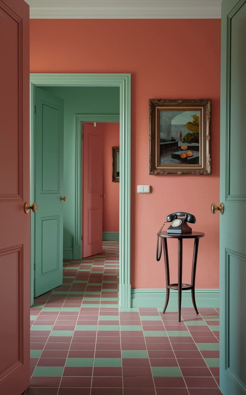 139. Coral and Mint Dreamcore Foyer with a Floor That Feels Softer Than It Should