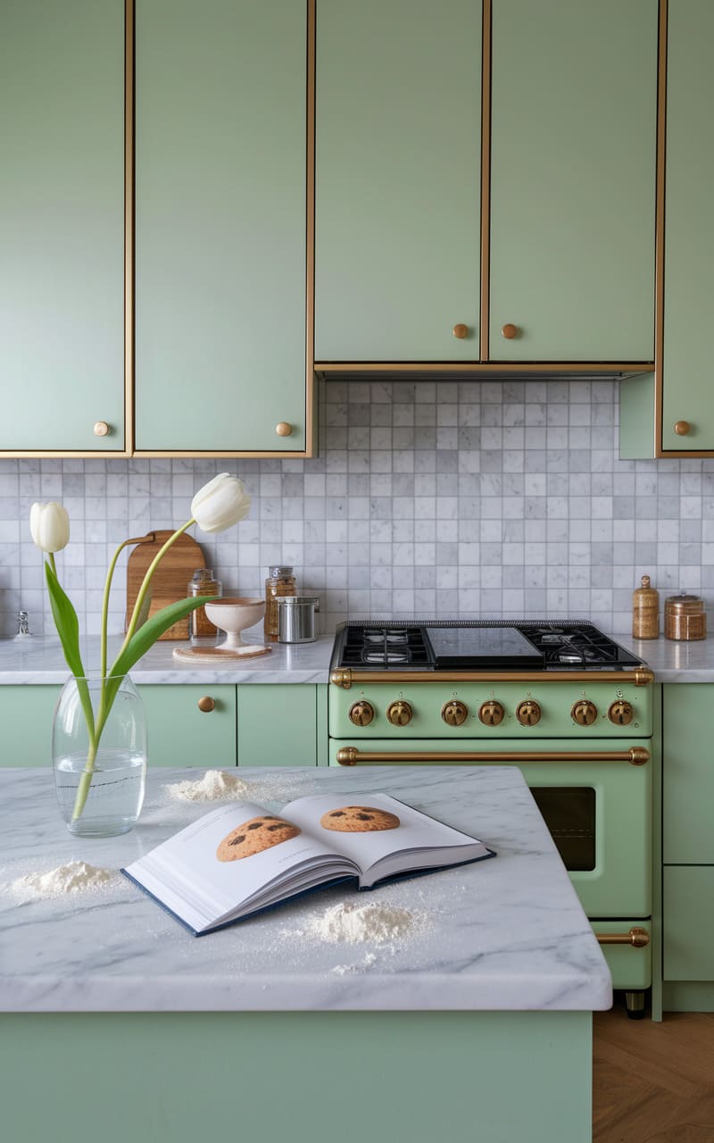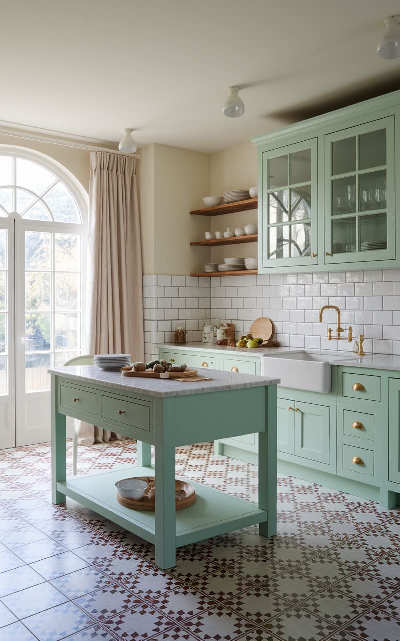 131. Pale Mint and Ivory Dreamcore Kitchen with Delicate Vintage Tilework