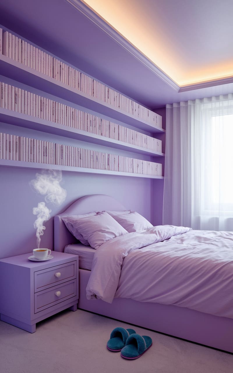 144. Lavender Dreamcore Home Library with a Cozy Chair