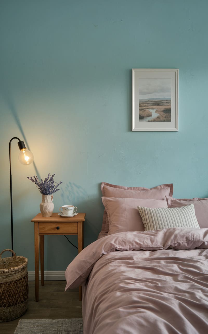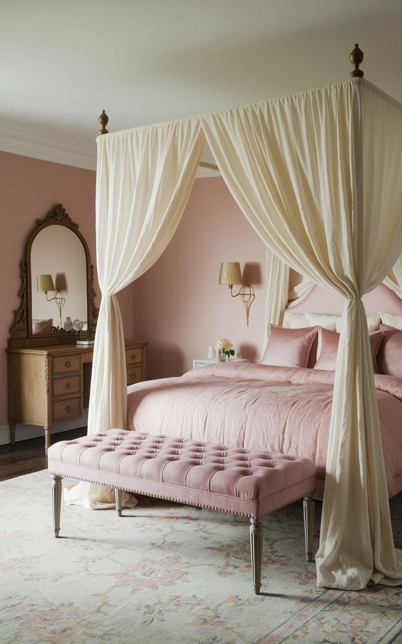24. Dusty Pink Dreamcore Bedroom with Faint Whispering Wallpaper