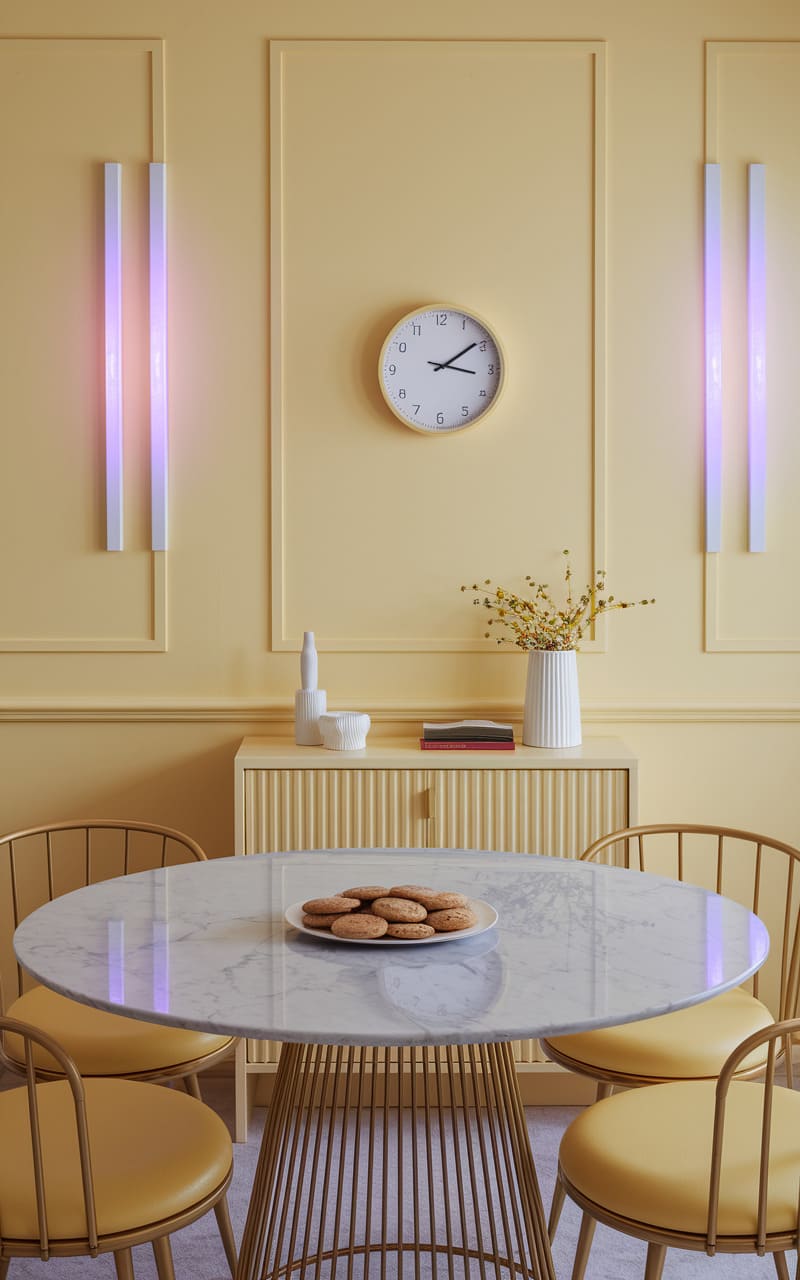 137. Soft Yellow Dreamcore Foyer with an Oversized Key Decoration