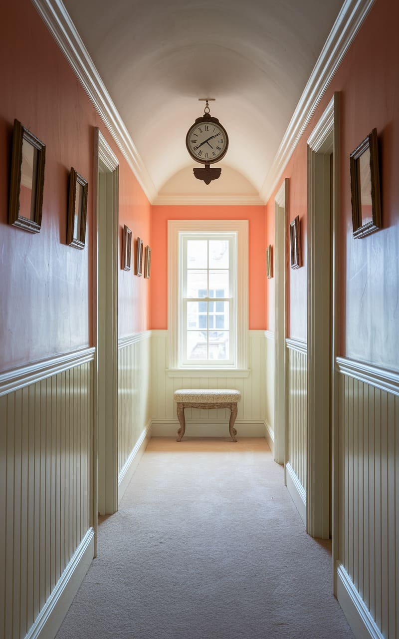 119. Coral and Mint Dreamcore Hallway with a Staircase
