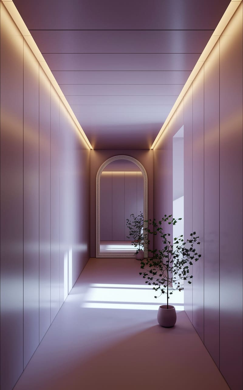 9. Dreamcore-Inspired Hallway with Endless Mirrors and Soft Glow