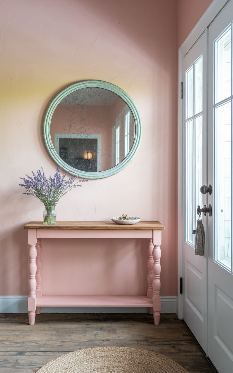 132. Blush Pink Dreamcore Entryway with a Vintage Mirror