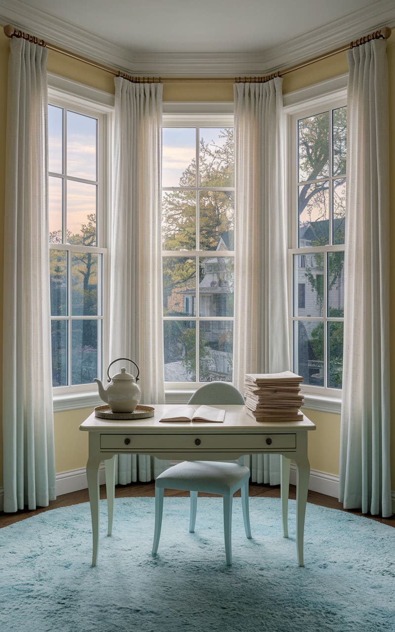 147. Soft Yellow Dreamcore Office with Bay Windows