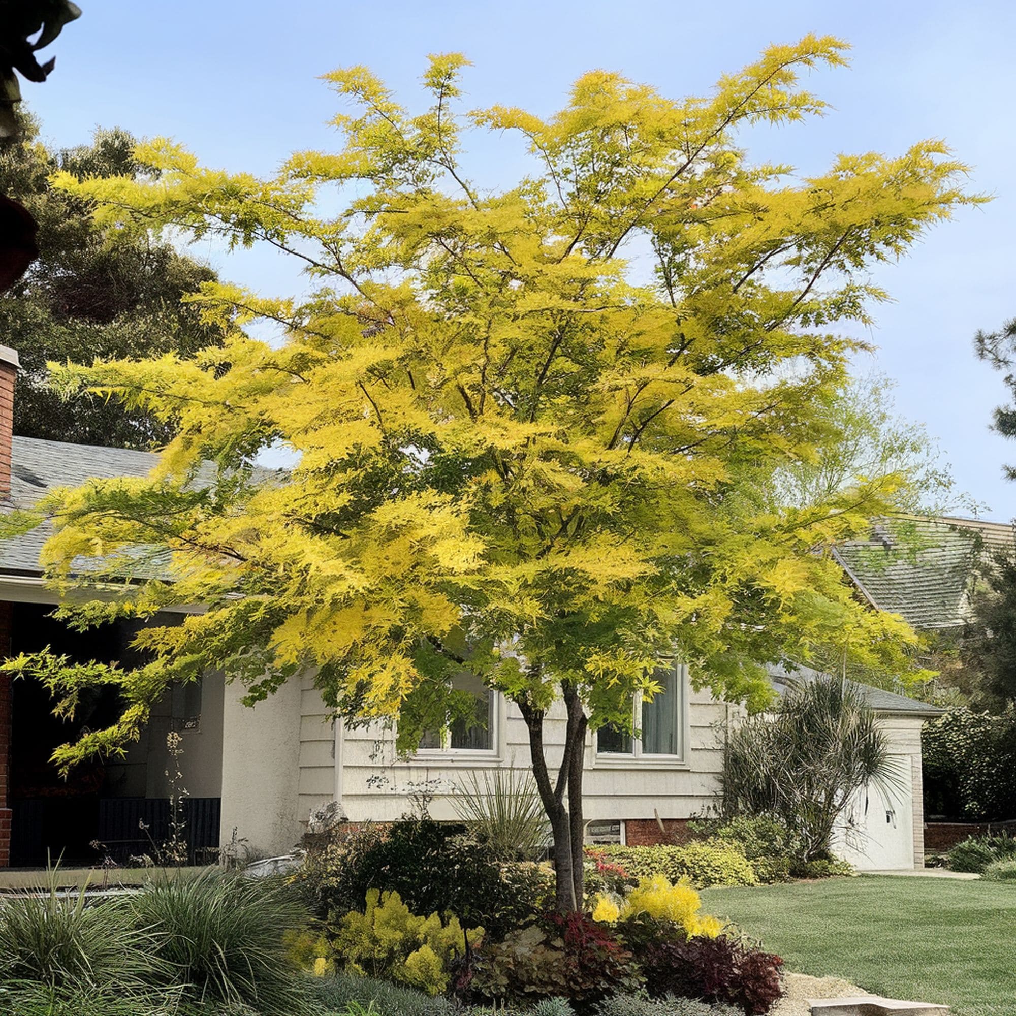 While most people interested in foliage aesthetic tend to focus on the look of the tree in the fall, it’s worth checking out the sunburst honey locust in the spring where it shows surprisingly beautiful foliage. The hardiness of this tree means that it can thrive in some soil conditions where other trees will struggle. This honey locust variety can grow well in sand or clay even though it prefers loam soil. One considerable problem of this drought-resistant tree is the increased susceptibility to pests and diseases. It’s often affected by spider mite insects or leaf spot disease.
